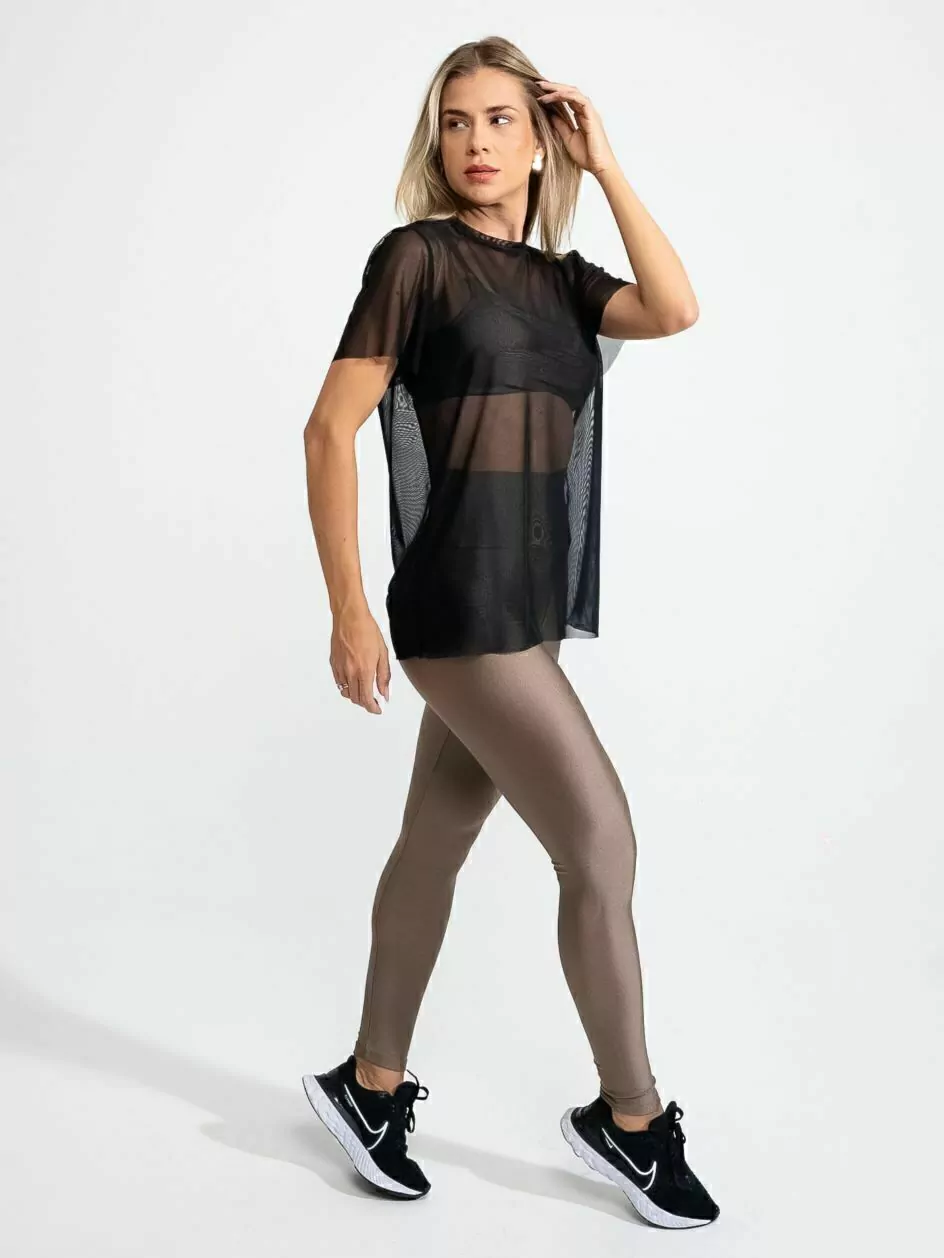 Nossa Camiseta Leveza de malha tule foi desenhada para compor o seu look e te deixar mais elegante e charmosa, podendo criar produções fitness e casuais. A malha tule esportiva é extremamente leve e confortável.