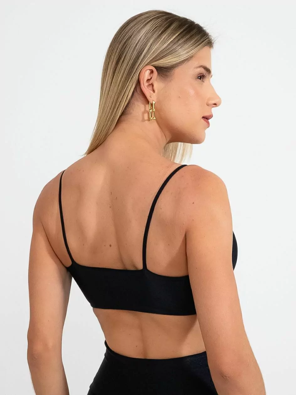 Possui alças finas, que garante delicadeza, sem forte compreensão para entregar liberdade de movimentos e com leve sustentação.